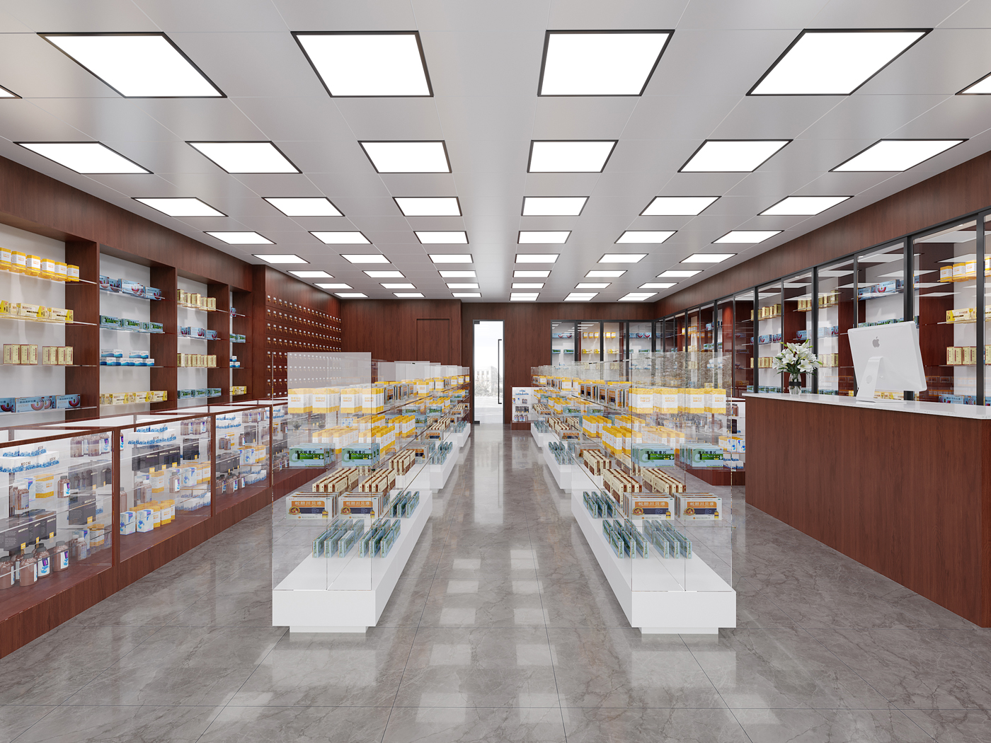 一般來講,好的藥房裝修要把設計成長長的購物通道,以避免顧客從捷徑通往收款處和出口,當顧客走走看看時,便可能看到一些引起購買欲望的商品,從而增加購買率。